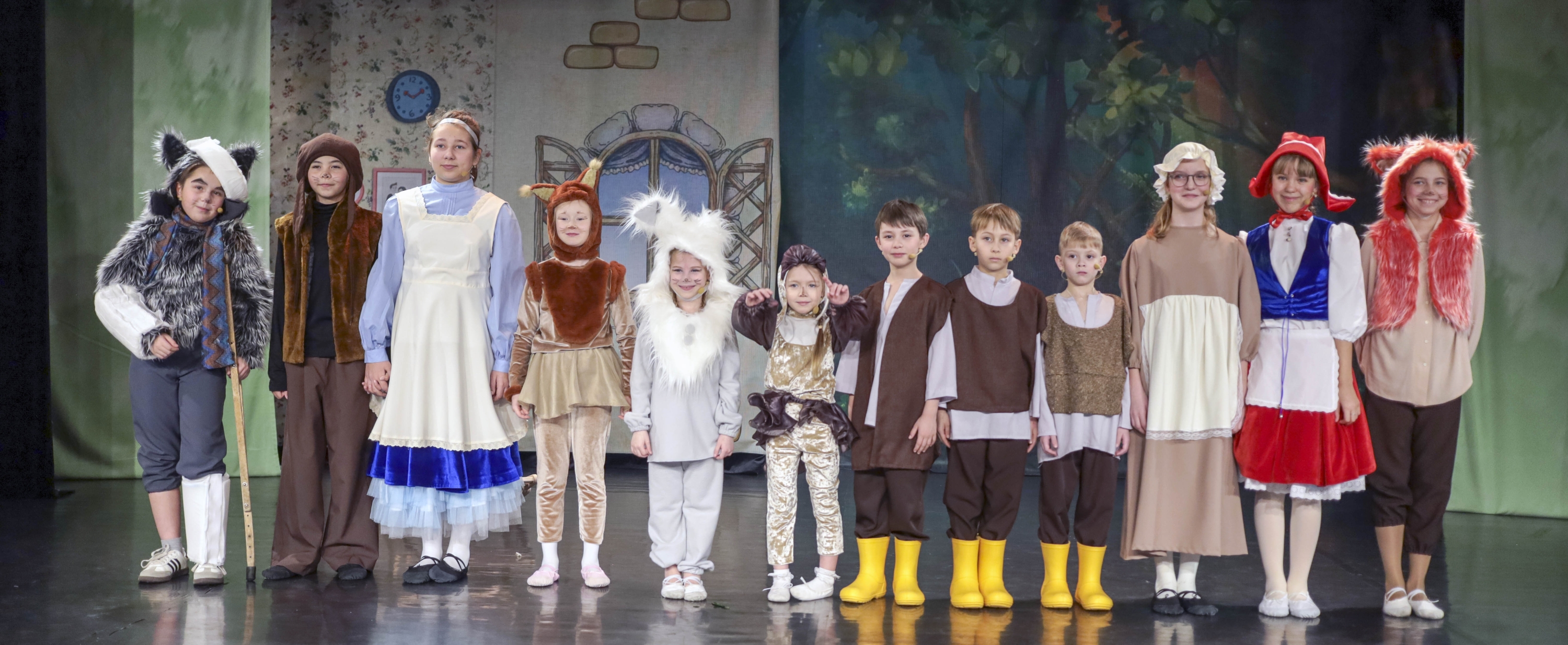 В нашем спектакле классическая сказка прозвучит на музыкальном языке. Будут петь все! Запоют и друзья Красной Шапочки – Зайчик, Белочка, Птичка, Лисичка, и Бабушка, и Мама, и Дровосеки, и, конечно, коварный Волк.